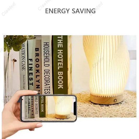 7W Wood Table Lamp For Bedroom USB Rechargeable Bedside Lamp Stepless Dimmable LED Desk Light Home Christmas Decoration