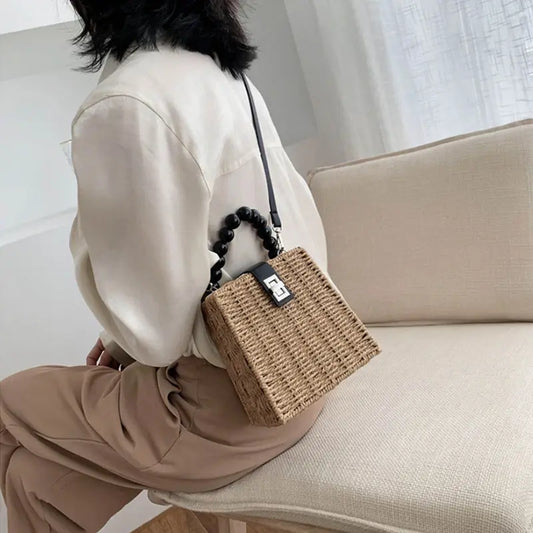Hand-woven Women Straw Bag Ladies Small Shoulder Bags Bohemia Beach Bag Crossbody Bags Travel Tote Female Handbag Box Holiday